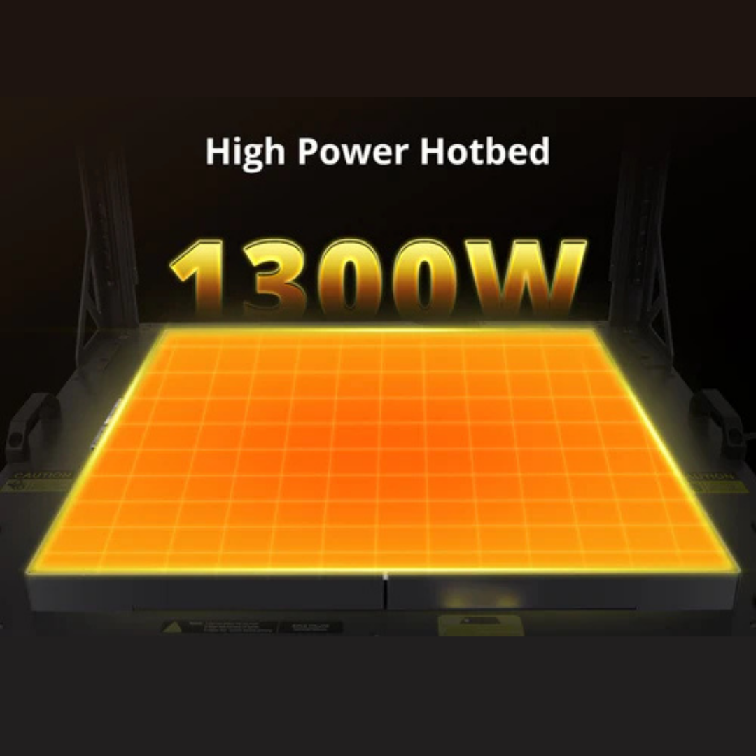 An 8mm thick aluminum bed paired with 1300W of power delivers rapid, uniform heating across the entire surface. The reinforced design minimizes warping and improves adhesion, even for large-format prints. |